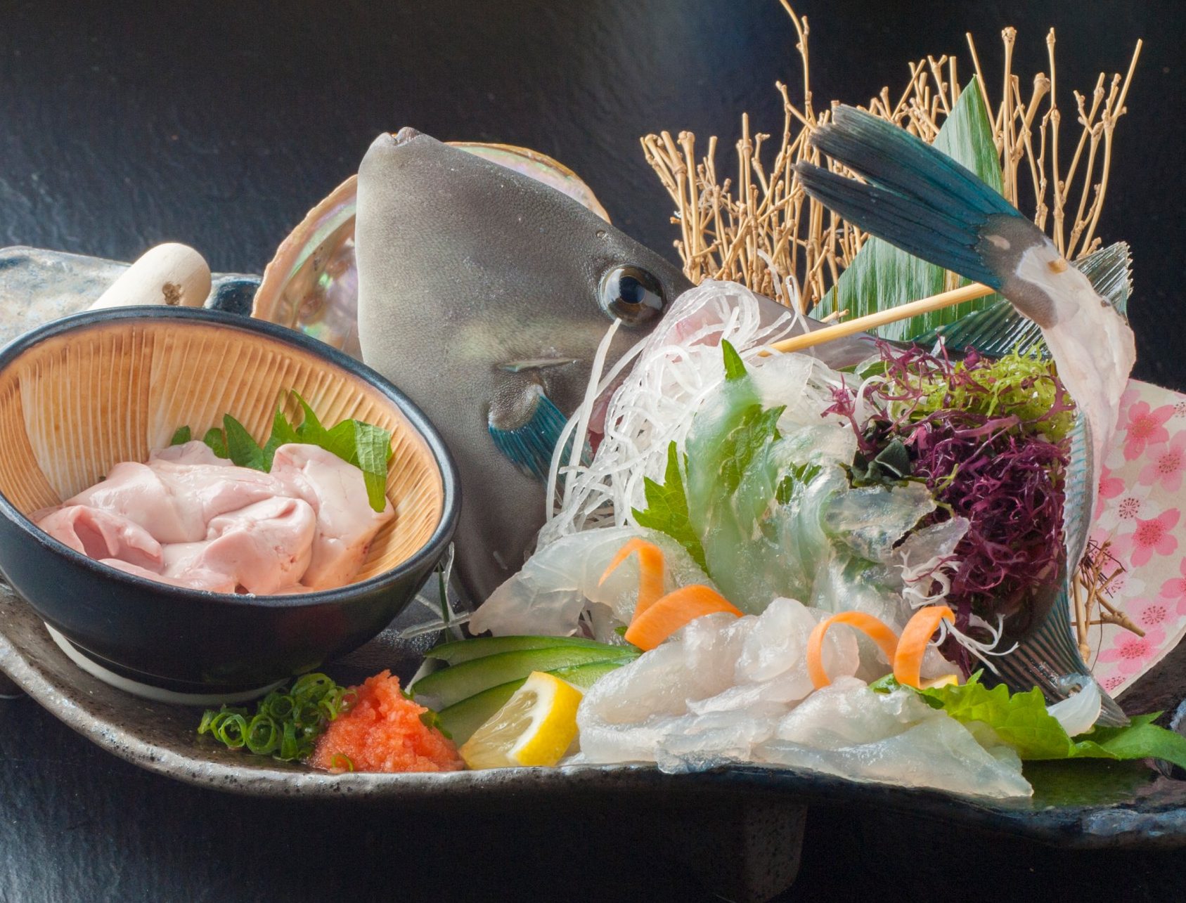 オーダー後に水槽から活け締めの姿造りでどうぞ